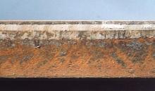 verklebtes Stahlprofil (von oben nach unten): Flachstahl 100/5, Klebefuge (SIKA), U100